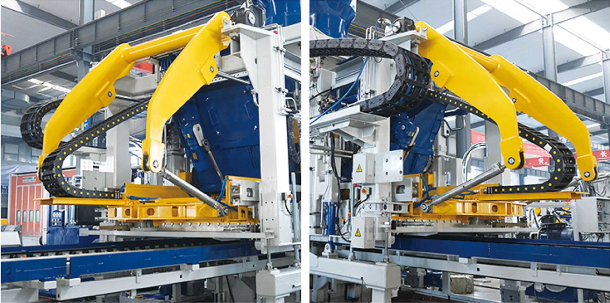 મુખ્ય ફ્રેમ પેટન્ટ ટેક્નોલ with જી સાથે રચાયેલ ઉચ્ચ-શક્તિવાળા વેલ્ડેડ ફ્રેમ સ્ટ્રક્ચરને અપનાવે છે, જે વિશેષ સ્ટીલ દ્વારા વેલ્ડિંગ કરવામાં આવે છે. ફ્રેમની ઉચ્ચ ગુણવત્તા અને stability ંચી સ્થિરતાને સુનિશ્ચિત કરવા માટે આખી ફ્રેમ વૃદ્ધાવસ્થાના કંપન સારવારને આધિન છે. તે ઉચ્ચ ચોકસાઇ સાથે, મોટા-વ્યાસના સ્તંભોને સપોર્ટ અને માર્ગદર્શિકા તરીકે ઉપયોગ કરે છે. સ્ટ્રિપિંગ મિકેનિકલ સિંક્રોનાઇઝેશન, ચોક્કસ ડિમોલ્ડિંગ અને તૈયાર ઉત્પાદનોની ઉચ્ચ સુસંગતતા અપનાવે છે.